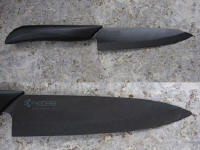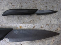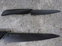 You will be impressed by the extreme sharpness and extraordinary cutting ability of these low weight ceramic knives. Fruit and vegetables, etc. slice easily. All kinds of meat without bones have no chance against the ceramic blade. |
